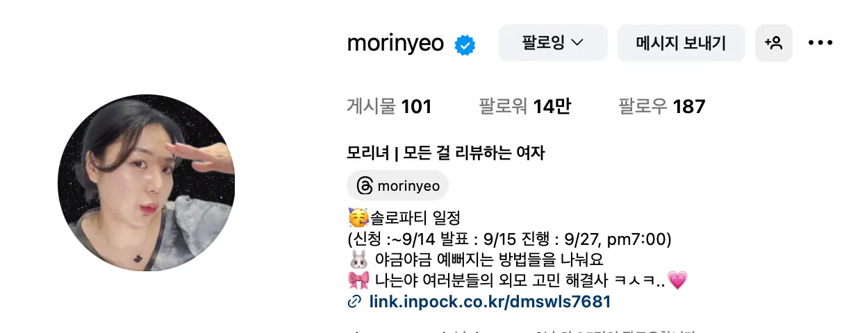 모리녀님의 대표 릴스 바로 보기
