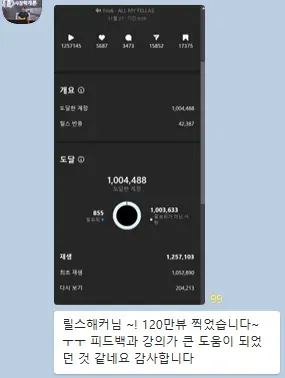 조회수 1만 미만 → 100만뷰 이상 달성!
